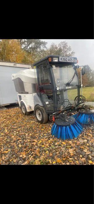 Zamiatarka – na ostatnim zdjęciu maszyna ze osprzętem do zamiatania, cały ten osprzęt czyli szczotki, dmuchawa i zbiornik są w zestawie.